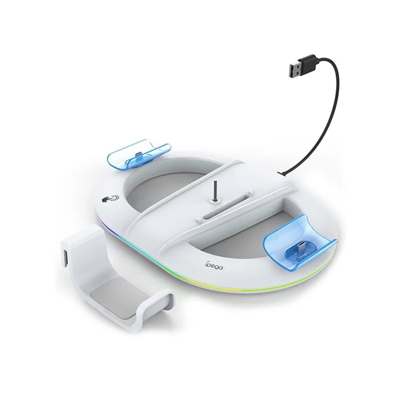 پایه شارژر iPega RGB برای PS5 اسلیم، یک استند حرفهای و چندمنظوره است که علاوه بر امکان شارژ همزمان دو کنترلر دوال سنس، محلی اختصاصی برای نگهداری کنسول و هدست دارد. این محصول با نورپردازی جذاب RGB، طراحی ارگونومیک و سیستم شارژ سریع، یک انتخاب عالی برای گیمرهایی است که به نظم و زیبایی ستاپ گیمینگ خود اهمیت میدهند. اگر به دنبال یک پایه شارژر کامل و کارآمد هستید، این مدل بهترین گزینه خواهد بود.