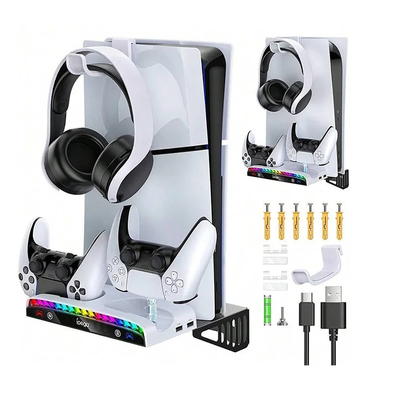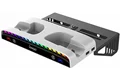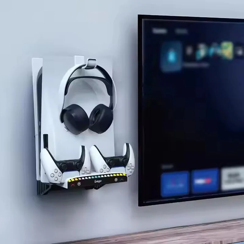 با پایه دیواری چند منظوره آی پگا پلی استیشن 5 خود را می توانید مدیریت کنید این پایه دیواری متناسب برای تمام نسخه های PS5 (اسلیم و فت) می باشد. همچنین این امکان را به شما می دهد که همزمان دو کنترلر خود را شارژ کنید. و همچنین جایی برای نگهداری و قرار دادن هدست شما و بلاخره اینکه در قسمت پایین با نور پسزمینه RGB با 15 حالت مختلف فضای بازی شما را رنگارنگ میکندو به راحتی می توانید سایر لوازم جانبی را به 3 پورت 0.USB 2 که مستقیماً روی بدنه ایستگاه قرار دارند وصل کنید.