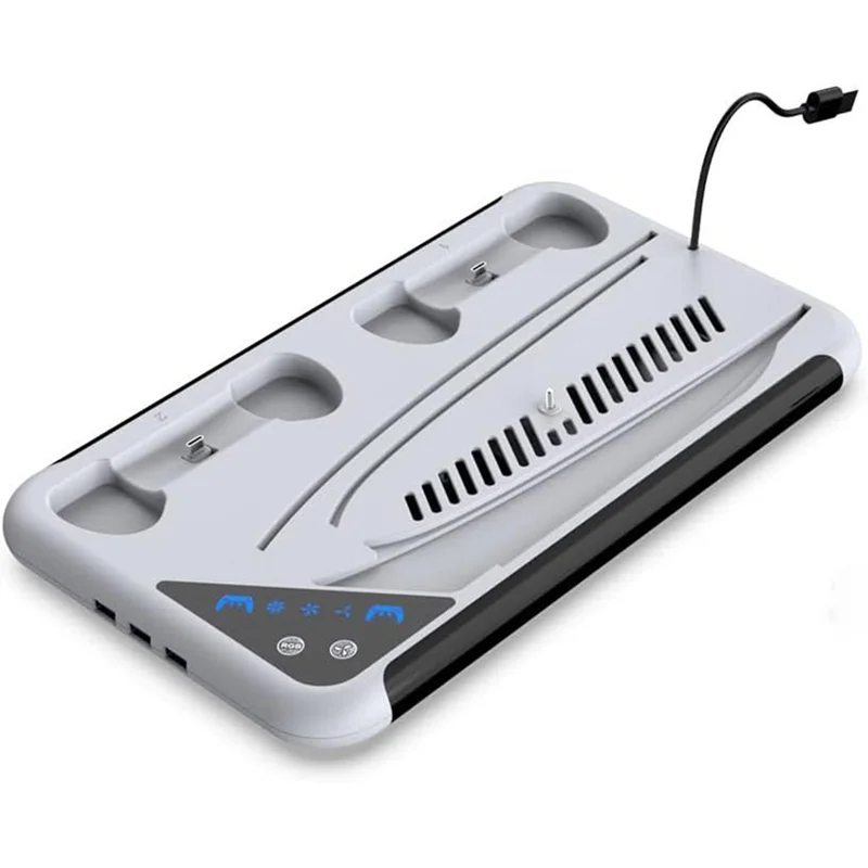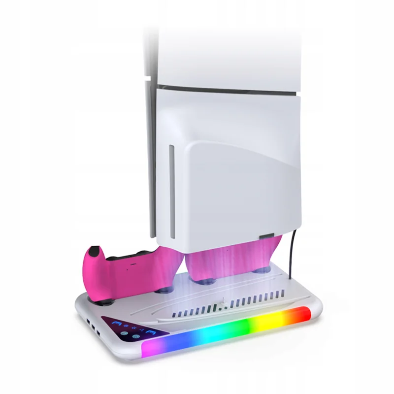 پایه فن چندمنظوره Dobe RGB برای PS5 دارای قابلیتهایی مثل خنککنندگی قوی برای جلوگیری از داغ شدن کنسول، شارژ همزمان دو دسته DualSense، و طراحی ارگونومیک برای جایگیری مناسب کنسول و لوازم جانبی است. نورپردازی RGB این محصول، ظاهر گیمینگ شما را کاملتر میکند. اگر به دنبال محافظت از کنسول و افزایش عمر آن هستید، این پایه انتخابی ایدهآل است.