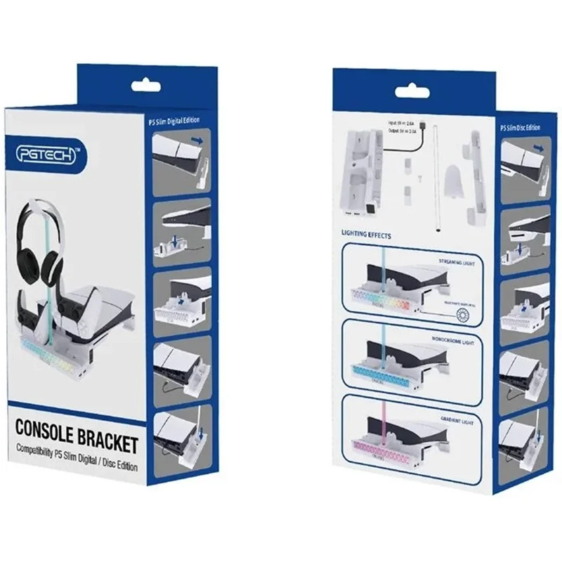 استند شارژر PGTech مدل GP‑533 برای,PS5 Slim با فن خنککننده ۳ سرعتی، شارژر دو دسته DualSense، دو پورت USB، و پایه ضد لغزش.