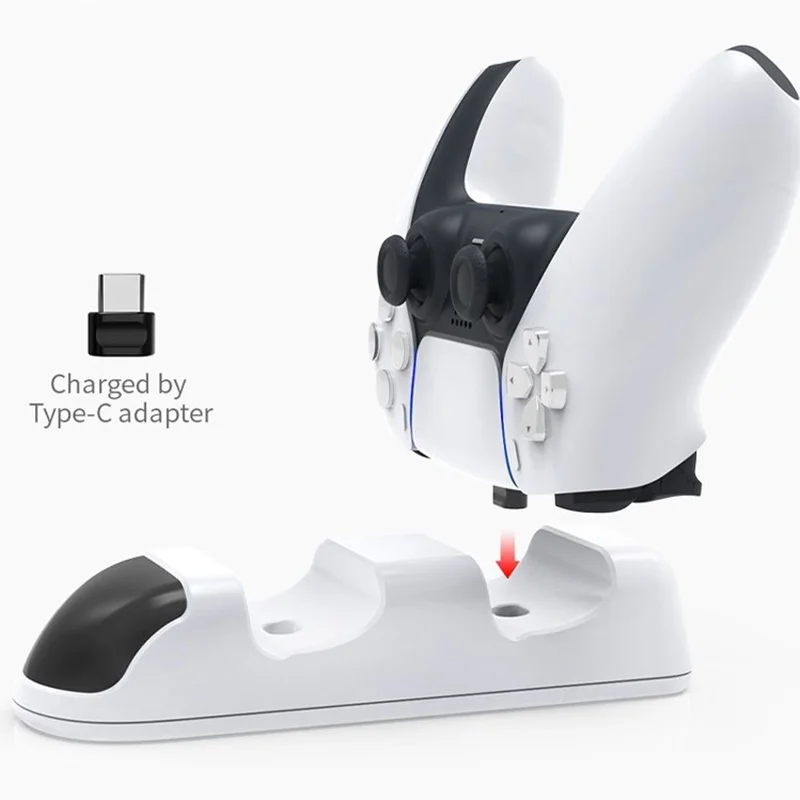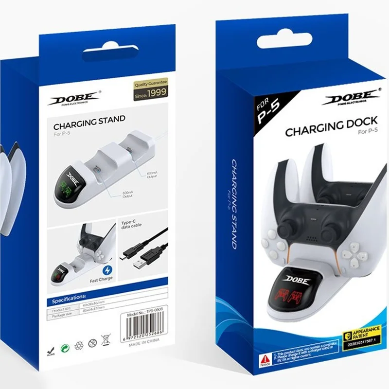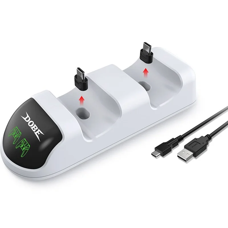 شارژر TP5‑0506 برند DOBE یک داک شارژ جمعوجور و شیک است که امکان شارژ همزمان دو دسته DualSense را فراهم میکند. این شارژر از تکنولوژی هوشمند میکروکنترل برای مدیریت خروجی استفاده میکند که از شارژ بیشازحد، افزایش حرارت یا اضافهبرق جلوگیری میکند .هر سوکت با آداپتور Type‑C جداشونده طراحی شده تا هنگام اتصال یا جداسازی، پورت شارژ دسته محفوظ بماند . نشانگر LED قرمز هنگام شارژ و سبز (یا آبی در برخی نسخهها) هنگام شارژ کامل، وضعیت دستگاه را بهوضوح نمایش میدهد .