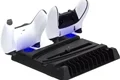 استند شارژر دابی مدل TP5-0593S یک پایه شارژ حرفهای برای دستههای پلی استیشن 5 است که امکان شارژ همزمان دو دسته را به شما میدهد. طراحی شیک و مشکی رنگ آن بهخوبی با کنسول هماهنگ شده و علاوه بر شارژ، به مرتبسازی دستهها روی میز کمک میکند. این استند با کابل Type-C به کنسول یا منبع تغذیه متصل میشود و دستهها را سریع و ایمن شارژ میکند. کیفیت ساخت عالی و طراحی ارگونومیک، این استند را به گزینهای ایدهآل برای گیمرهای حرفهای تبدیل کرده است.